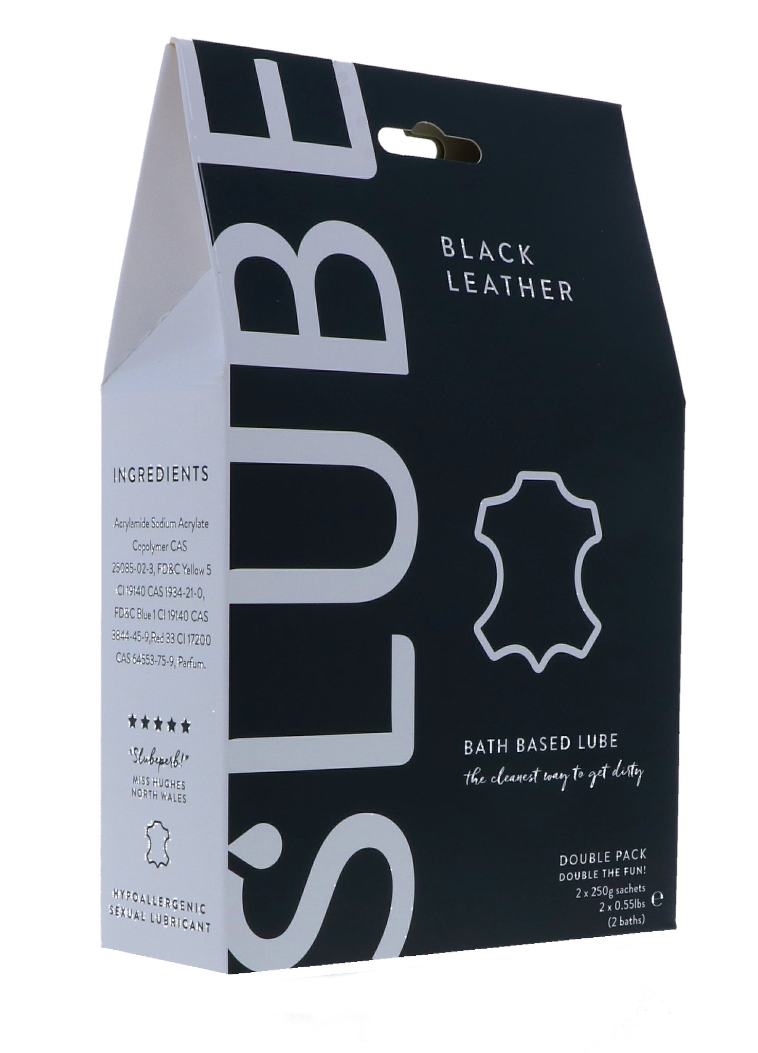 Slube Double Packs include 2 x 250g sachets and an instruction leaflet. This is enough for two whole bathtubs, or several other smaller mixes, depending on how you use Slube.